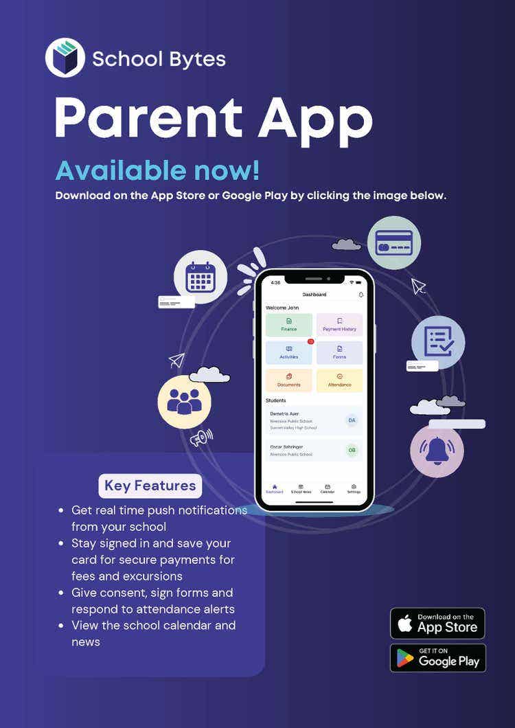 School Bytes is our all-in-one parent portal at Camden South Public School, allowing families to make payments, view financial records, give consent for events, check attendance details, access academic reports, read newsletters, and stay up to date with the school calendar — all in one convenient place.